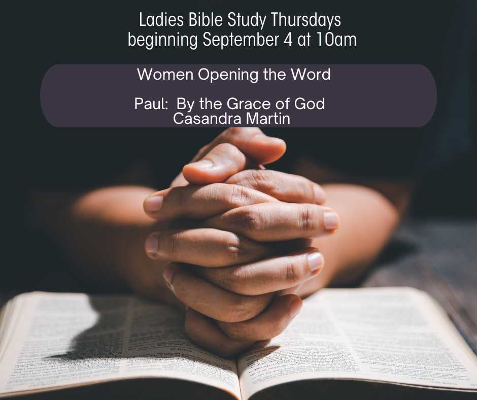 Join us in person at the church or via zoom every Thursday at 10am. Ladies will be using Casandra Martin's Women Opening the Word, Paul: By the Grace of God. Contact the church office or Kathy Hutchison to purchase your workbook, $10.00.