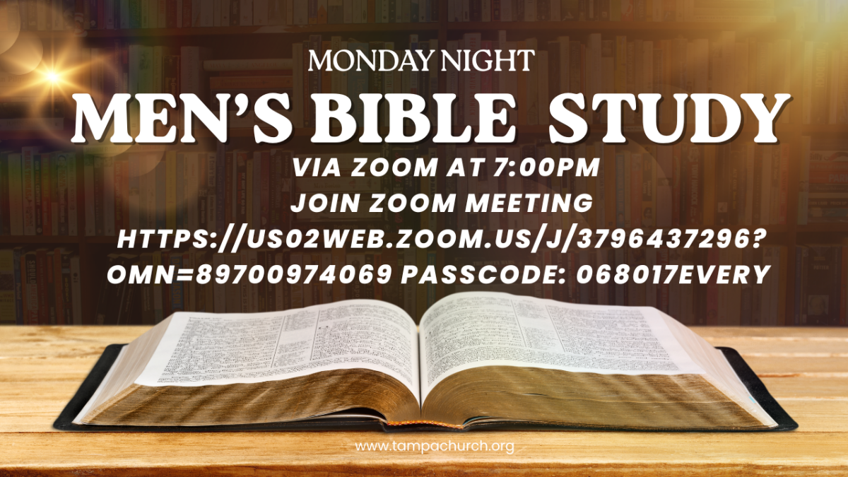 All men are invited to join us for a weekly Bible study on Zoom! This is a great opportunity to grow in faith, encourage one another, and spend time in the Word of God together.